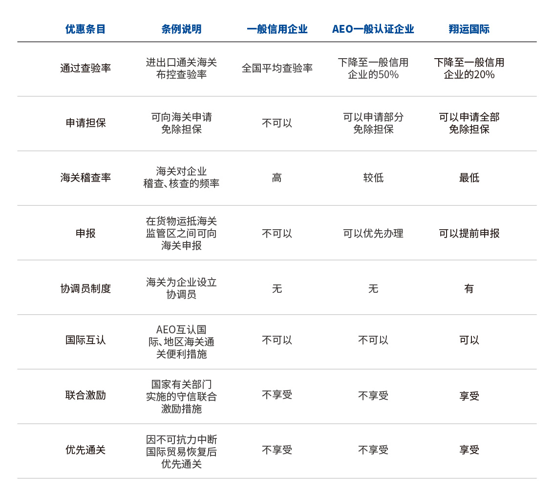 翔運國際設有專業的關務代理團隊,公司屢獲上海關區優秀報關企業榮譽,并于2021年通過AEO高級認證。